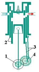 1 – коленчатый вал, 2 – гильзы, 3 – шатуны привода гильз, 4 – распредвал
