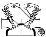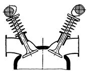 Рис. 2.9. Расположение двух верхних клапанов в два ряда | Рис. 2.10. Верхнее расположение клапанов, верхнее положение 2 распредвалов (2ОHC) |