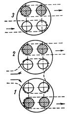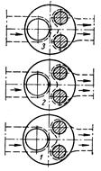 Рис. 2.13. Расположение одноименных клапанов в двух рядах | Рис. 2.14. Расположение одноименных клапанов в отдельных рядах |