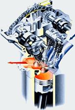 Рис. 2.10. Верхнее расположение клапанов, верхнее положение 2 распредвалов (2ОHC)