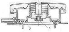 В пробке заливной горловины радиатора установлен паровой клапан 2 и воздушный клапан 1, которые служат для поддержания давления в заданных пределах (рис. 3.6).