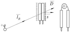 В поле точечного заряда (рис. 1) расположены две пластины, находящиеся в контакте. Пластины имеют ручки из диэлектрика. Под действием поля источника положительные заряды уйдут в правую пластину. Левая пластина зарядится отрицательно. Затем пластины разъединяются, при этом через гальванометр протечет ток, пропорциональный величине заряда, накопленного на пластине. Будем проводить опыты, фиксируя величину тока. Пластины удаляются от источника, ток уменьшается обратно пропорционально квадрату расстояния R2. Кроме того, величина тока будет зависеть от ориентации площадок в пространстве, то есть от угла α. Установлено, что величина тока пропорциональна величине cos α. Естественно, что величина тока пропорциональна величине заряда q, образующего поле в пространстве. Пусть величина наводимого заряда (индуцированного) пропорциональна току i, т.е. q = k· i.