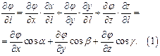 Для определения производной от функции потенциала по направлению l, а от направления зависит величина производной (рис.1), выполняются следующие преобразования: