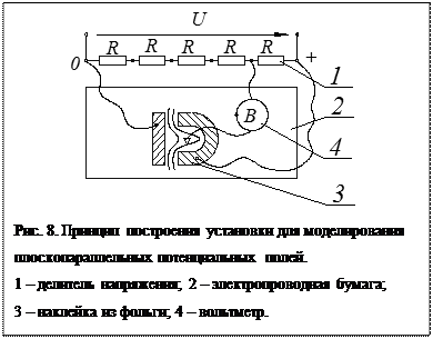 Вследствие существующей формальной аналогии между двумя полями, имеется метод анализа потенциальных полей, основанный на моделировании полей на электропроводной бумаге (рис. 8).