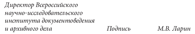 Реквизит «подпись» состоит из наименования должности лица, подписывающего документ, его личной подписи и ее расшифровки, в которой указываются инициалы и фамилия.