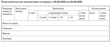 По результатам анализа составляются обобщающие отчеты. Например, форма отчета по контролю: