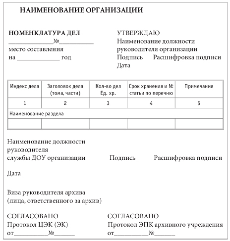 Рис. 5.2. Форма номенклатуры дел структурного подразделения организации