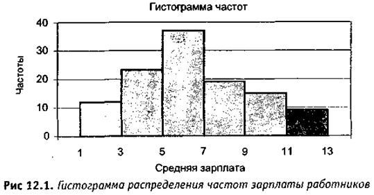 Построим гистограмму частот по данным таблицы 12.3, используя мастер диаграмм в MS Excel.