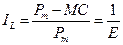 | где: | IL – лернеровский индекс монопольной власти; Рт – монопольная цена; МС – предельные издержки; Е – эластичность спроса на продукцию. |