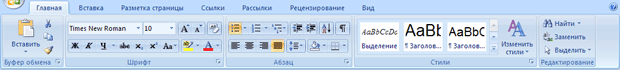 Лента – один из главных элементов окна Word 2007, который заменил панели инструментов и строку меню, существовавшие в предыдущих версиях(рис. 1.8).