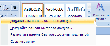 Рис. 1.13. Добавление команд на панель быстрого доступа из ленты