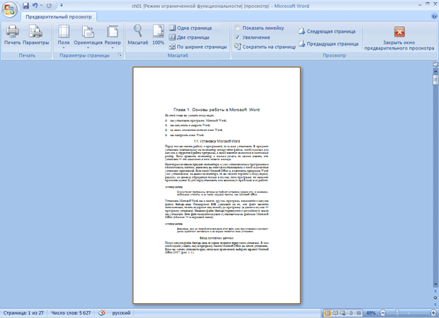 Рис. 2.56. Окно Microsoft Word в режиме Предварительный просмотр