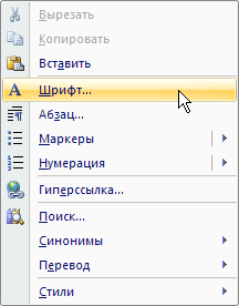 Рис. 4.4. Выбор команды Шрифт в контекстном меню