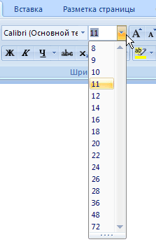 - Выбирать размер (кегль) шрифта (рис. 4.10). Возле списка изменения размера шрифта также есть удобные кнопки для быстрого увеличения и уменьшения кегля на один пункт (рис. 4.11).