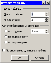 Рис. 5.3. Диалоговое окно Вставка таблицы