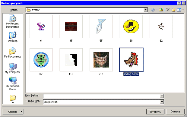 - Рисунок – при выборе этой команды открывается окно Выбор рисунка (рис. 6.23). В нем можно выбрать изображение, которое будет использоваться для заливки.