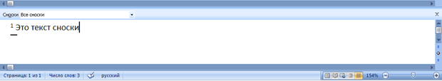 - Поместите курсор в то место документа, где следует вставить сноску.