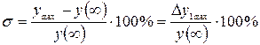 Перерегулирование s - отношение первого максимального отклонения D y1max регулируемой переменной y (t) от установившегося значения y (¥) к этому установившемуся значению, выраженное в процентах, т.е.