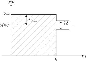 Допустимое значение s в каждом конкретном случае определяется на основе опыта эксплуатации. В большинстве случаев качество регулирования считается удовлетворительным, если s=(10¸30)%. Первое максимальное отклонение D y1max зависит от: динамических характеристик объекта управления; величины возмущений; настроек регулятора. Поэтому D y1max также считается важной оценкой качества регулирования, которая задается обычно непосредственно в единицах измерения регулируемой переменной.