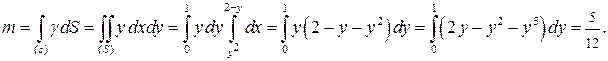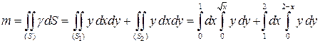 Таким образом, масса пластины, с одной стороны, равна двойному интегралу из формулы, с другой стороны, равна двукратному интегралу из той же формулы. Следовательно, эти интегралы равны между собой.