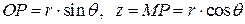 Установим связь между прямоугольными и сферическими координатами. Из прямоугольного треугольника