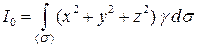 Решение. Момент инерции относительно начала координат поверхности найдем с помощью поверхностного интеграла по второй из формул (6.13):