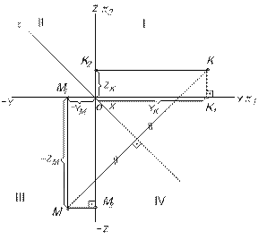 Пусть точка L симметрична точке К относительно s (рис.14). Тогда координата YК равна по величине и по знаку координате ZL (YК = ZL), а координата ZК равна по величине и по знаку координате YL (ZК = YL).