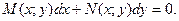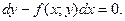 Уравнение (4) содержит не производную от искомой функции, а дифференциалы этой функции и её аргумента. Это частный случай уравнения, записанного в дифференциалах. В общем случае уравнение в дифференциалах имеет вид