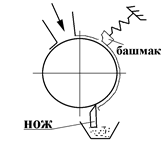 Одновалковые смесители. Башмак размазывает компоненты на поверхности волка.