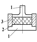 1-пуансон, 2-шашка, 3-матрица прессования;