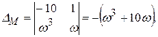 Полагая p = jw, образуем частотное уравнение - jw 3 - w 2 M + jwN + N + 10 = 0. Записываем его действительное и мнимое слагаемые в виде системы двух уравнений: