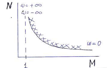 При неограниченном возрастании частоты M стремится к 1, N стремится к бесконечности. При стремлении w к нулю M стремится к бесконечности, N к нулю. Вид кривой Д-разбиения показан на рис. 5.29. Замена w на - w вида кривой не меняет.