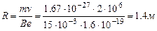 - Вычислить радиус дуги окружности, которую описывает протон в магнитном поле с индукцией 15мТ, если скорость протона 2Мм/с.