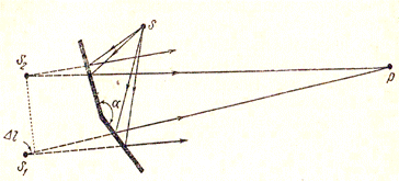 Другой способ получения когерентных источников основан на отражении света от двух плоских зеркал (зеркал Френеля), установленных под углом