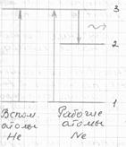 Другое излучение вынужденное, или индуцированное. Оно возникает при взаимодействии фотона с возбужденной частицей, если энергия фотона равна разности уровней энергии. В результате вынужденного квантового перехода от частицы будут распространяться в одном направлении 2 фотона: один-первичный, вынуждающий, а другой-вторичный, испущенный.