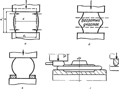 Для проведения операции используют местный нагрев, например, в середине заготовки (рис. 12.2.б), или ограничивают деформацию на части заготовки кольцевым инструментом (рис. 12.2.в).