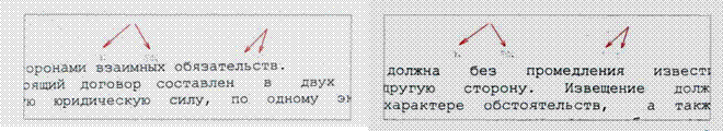 Рисунок 17 и 18 - Фрагменты двух разных документов с одинаковыми дефектами печати