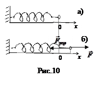 деформирующей силе. Деформации, т.е. изменение расстояний между точками тела в результате внешнего воздействия, называются упругими, если они исчезают после снятия воздействия. Упругими, как правило, бывают только малые деформации. Примером служит упругая сила сжатой или растянутой пружины. На рис.10 а) показана недеформированная пружина, на рис 10 б) эта же пружина растянута внешней силой