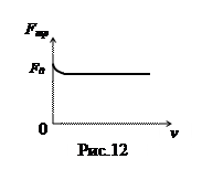 риалов трущихся поверхностей, качества их обработки, загрязненности и обычно считается приблизительно постоянным для двух конкретных тел. В действительности, при стремлении скорости к нулю отмечается некоторое возрастание силы трения до значения F0. На рис. 12 приведен график модуля силы трения скольжения от величины скорости для движения, изображенного на рис.11. Чтобы покоящееся тело 1 пришло в движение, к нему надо приложить силу, чуть превышающую F0. Если внешняя сдвигающая сила