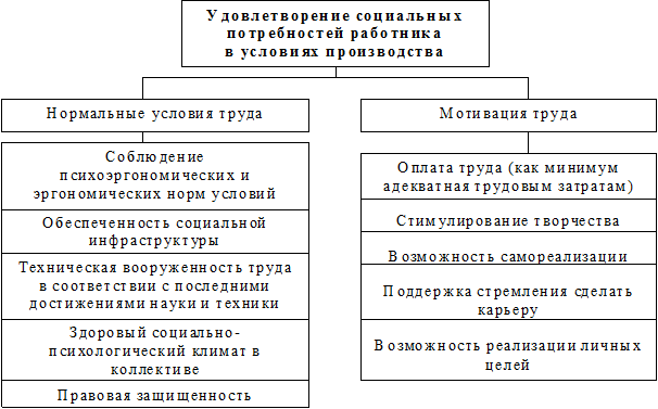 социальные цели – достижение заданной степени удовлетворения социальных потребностей работников.