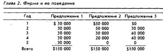 б. Чем больше предполагаемое количество лет, через которое будет получен поток наличности, тем меньшей будет его текущая стоимость. Так, предложение 2, согласно которому можно надеяться на больший поток наличности в более близкие сроки, будет иметь большую ценность, чем предложения 1 или 3. Предложение 3, согласно которому можно надеяться на большую сумму годовых доходов, чем в предложениях 1 или 2, но относящее эту сумму на более поздний срок, будет иметь наименьшую ценность.