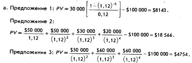 а. Какой будет чистая текущая стоимость (т.е. дисконтированный кассовый приход минус дисконтированный кассовый расход) каждого предложения при дисконтной ставке в 12%?
