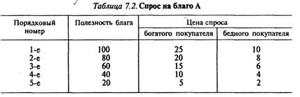 Данные, характеризующие цену спроса богатого и бедного потребителей на благо А, приведены в табл.7.2.