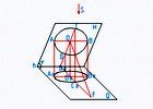 Большая ось этого эллипса есть проекция того диаметра окружности, который параллелен прямой пересечения плоскости P, в которой лежит окружность, и плоскости Q. Малая ось эллипса расположена перпендикулярно [MN].