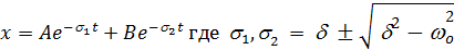 , имеет место апериодическое движение при котором тело экспоненциально приближается к точке равновесия и проходит через точку равновесия в процессе движения не более одного раза
