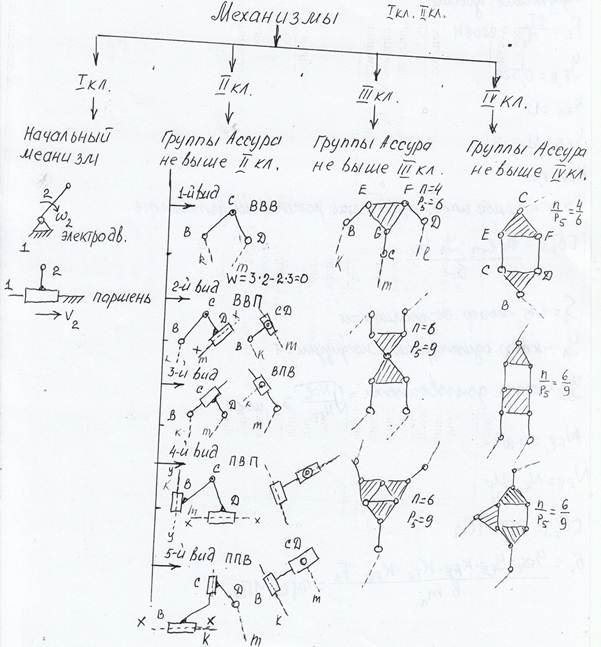 Русским ученым Л.В.Ассуром в 1914 году был впервые сформулирован основной принцип образования механизмов.