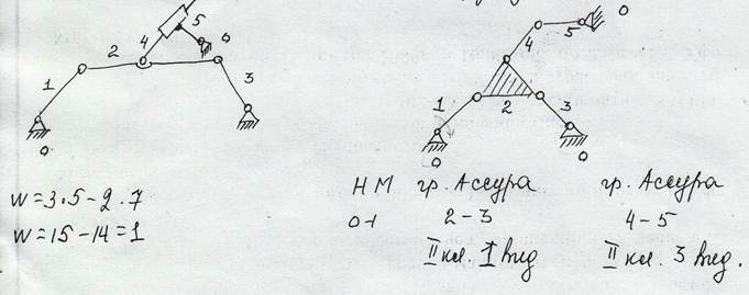 По Асуру любой сложный механизм может быть получен из НМ путем последовательного присоединения к нему так называемых структурных групп Асура с четным числом звеньев и W=0.