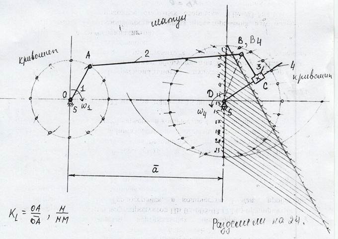 Выделим в плоскости звена 4 точку B4, с которой в данный момент совпадает т.B