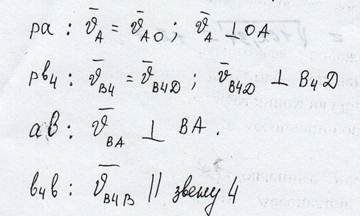 Vb4- скорость в т.B4, принадлежащей в плоскости звена 4 и совпадающего в данный момент с т.B