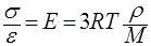 где ρ — плотность полимера; M — молекулярная масса отрезка цепи, заключенного между двумя соседними узлами; λ — отношение длины растянутого образца к его первоначальной длине.